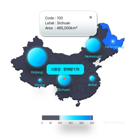 사용자 설정(색상, 범례, 툴팁)데이터와의 연동을 통한 맵의 color변경(범례제공),